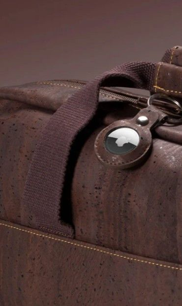 Er besteht aus veganem Kork, der robust, kratzfest und wasserabweisend ist.