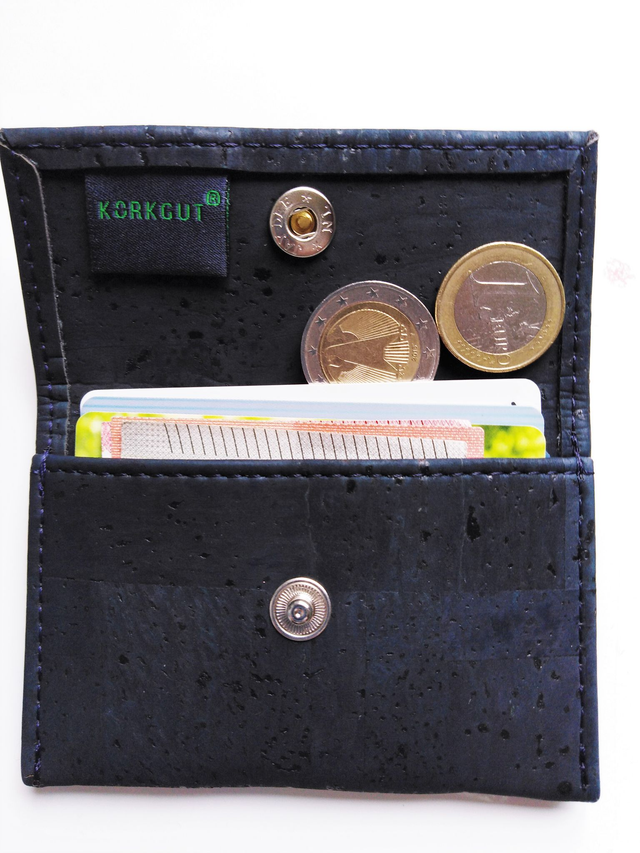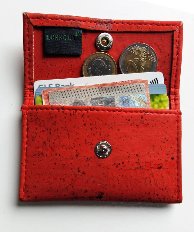 Das kann man mit der leichten und einfach gestalteten Geldbörse. Sie passt auch in kleine Handtaschen oder in die Hosentasche. Die wichtigsten Dinge wie EC-Karte, Ausweis, Führerschein, Geldscheine, Münzen passen locker rein. Platz für bis zu 9 Karten. Ein Druckknopf aus Metall verschließt das kleine Portemonnaie sicher.